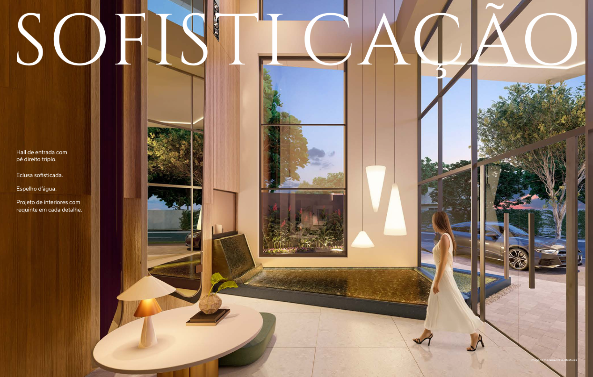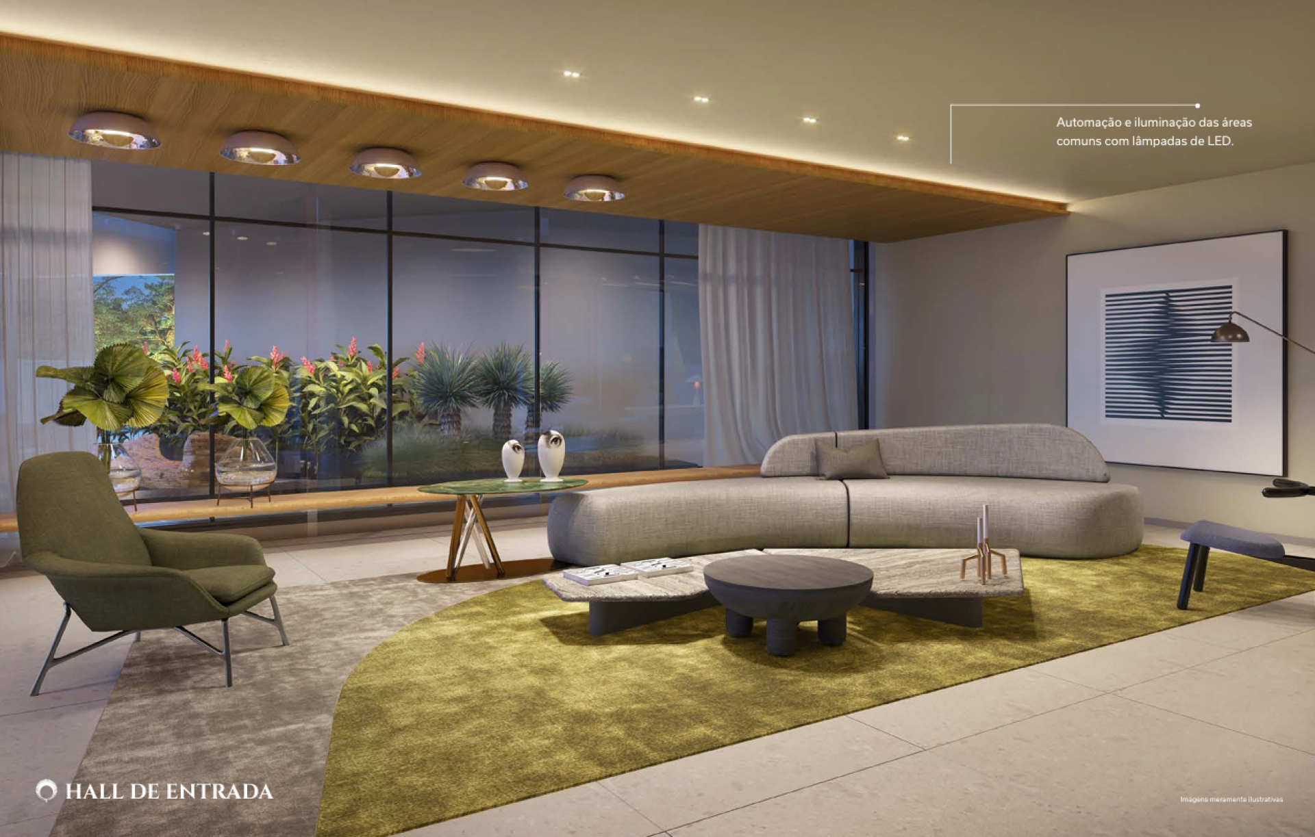 Hall social com pé-direito triplo e alto padrão