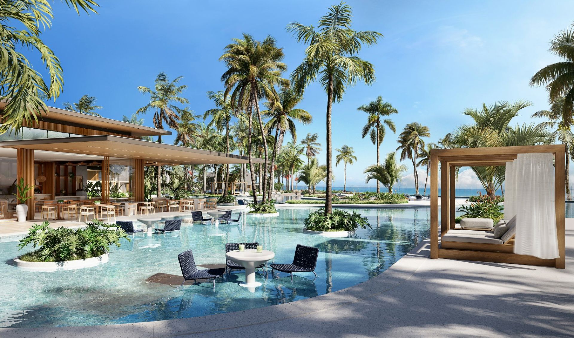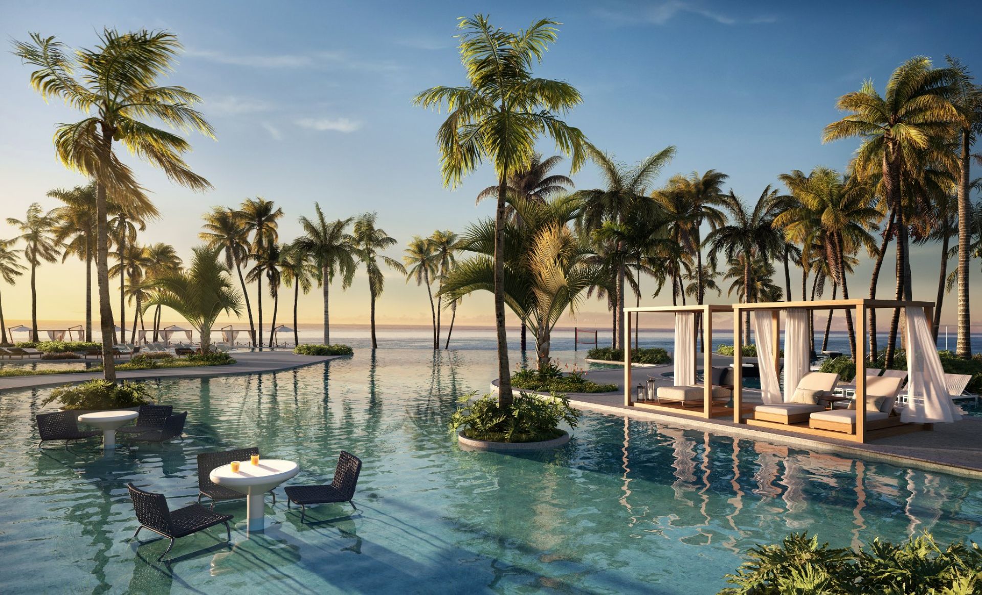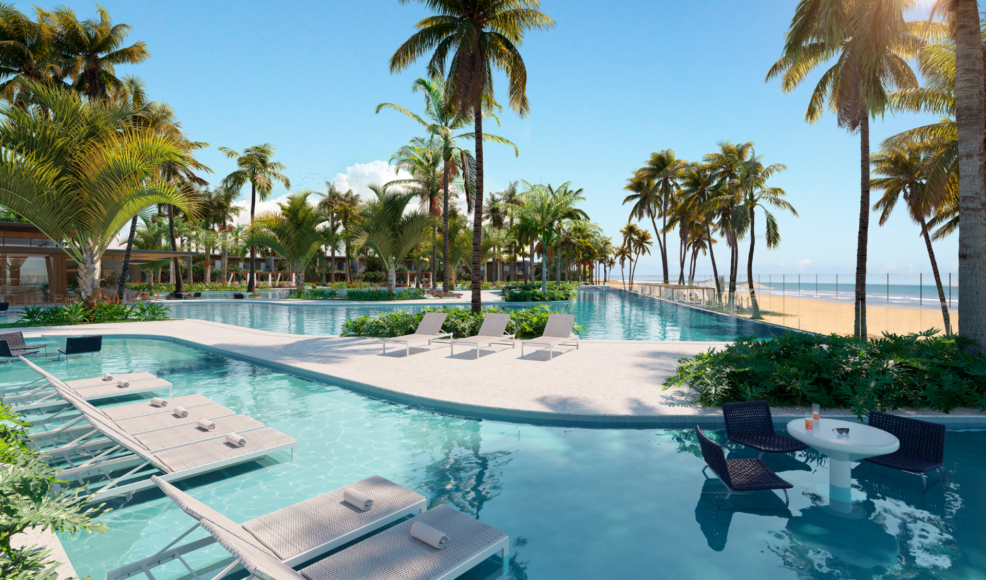 Deck molhado, solarium e pool bar