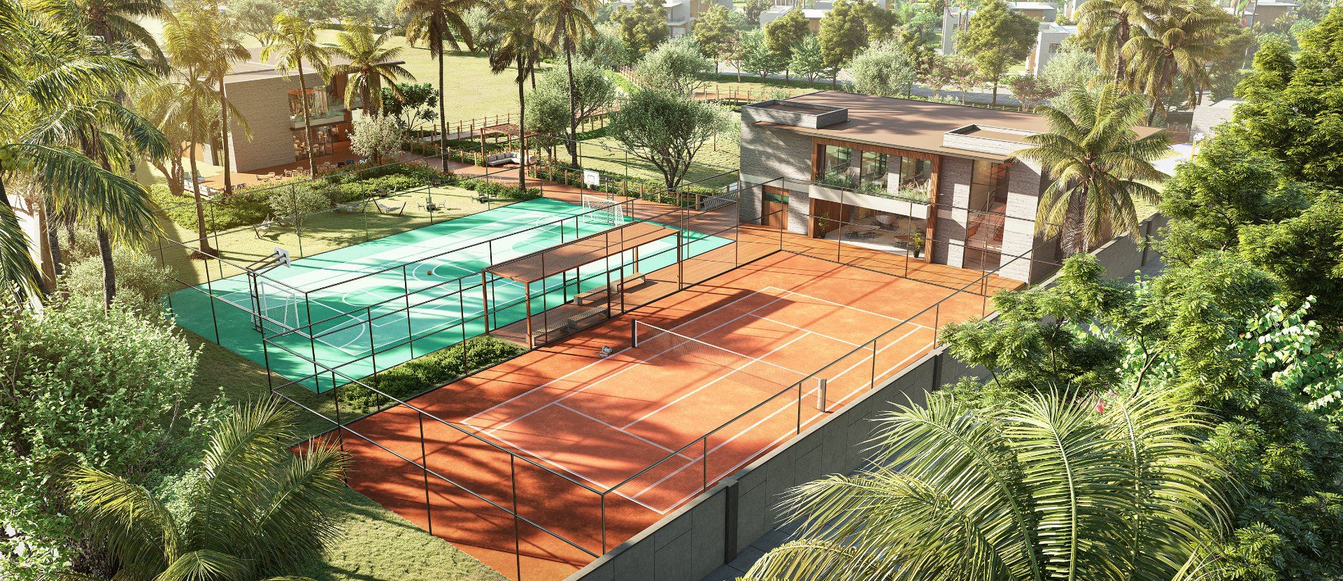 Quadras de beach tennis, tênis e poliesportiva