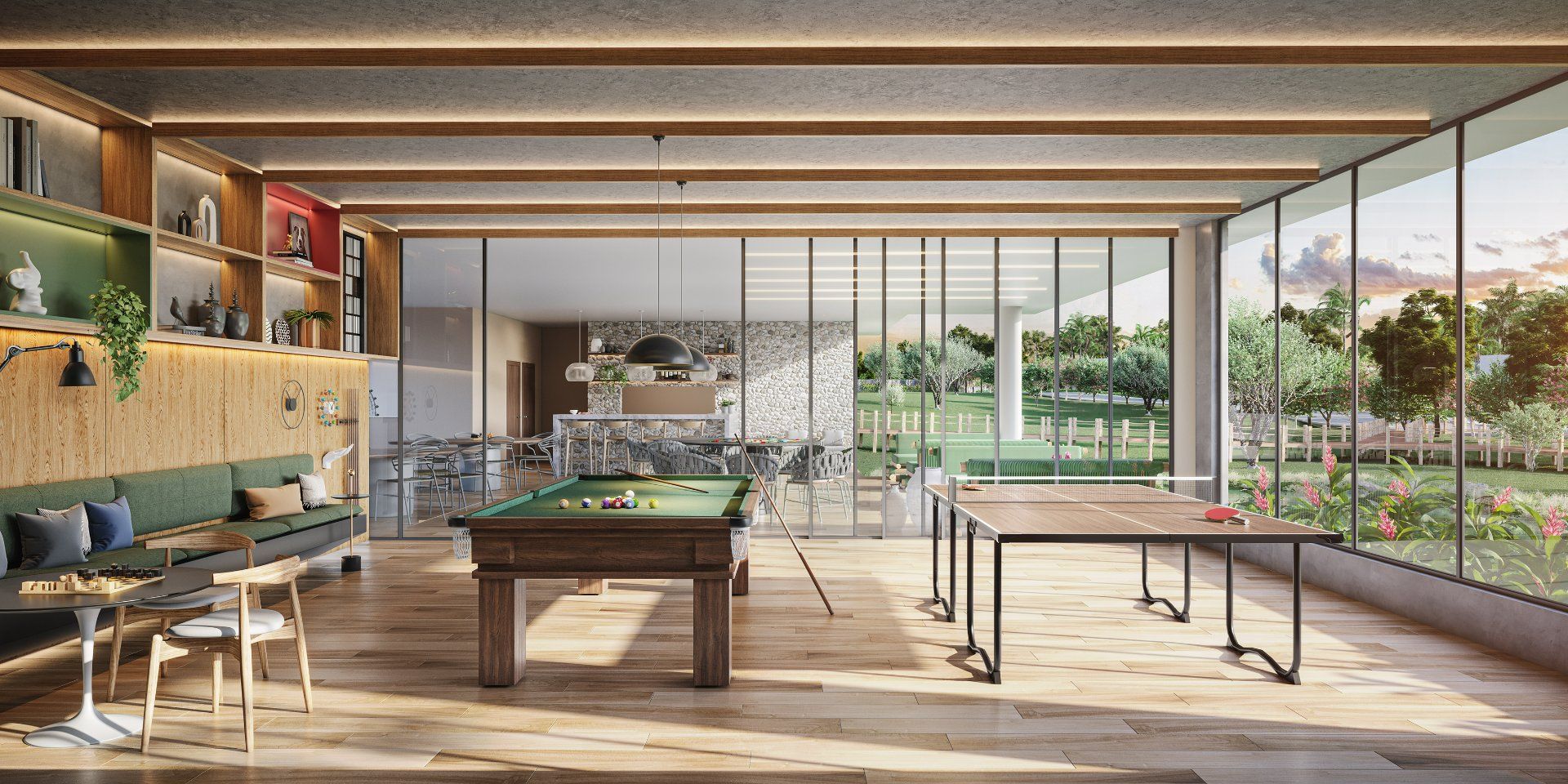 Salão de jogos e espaços gourmet