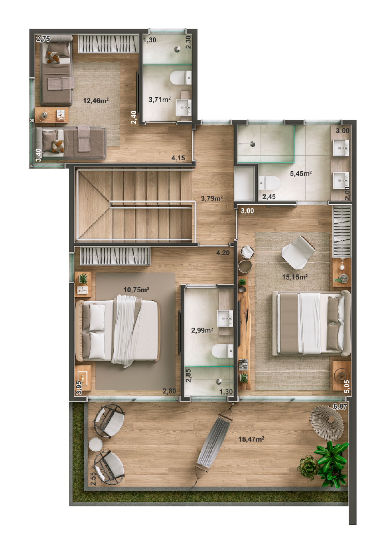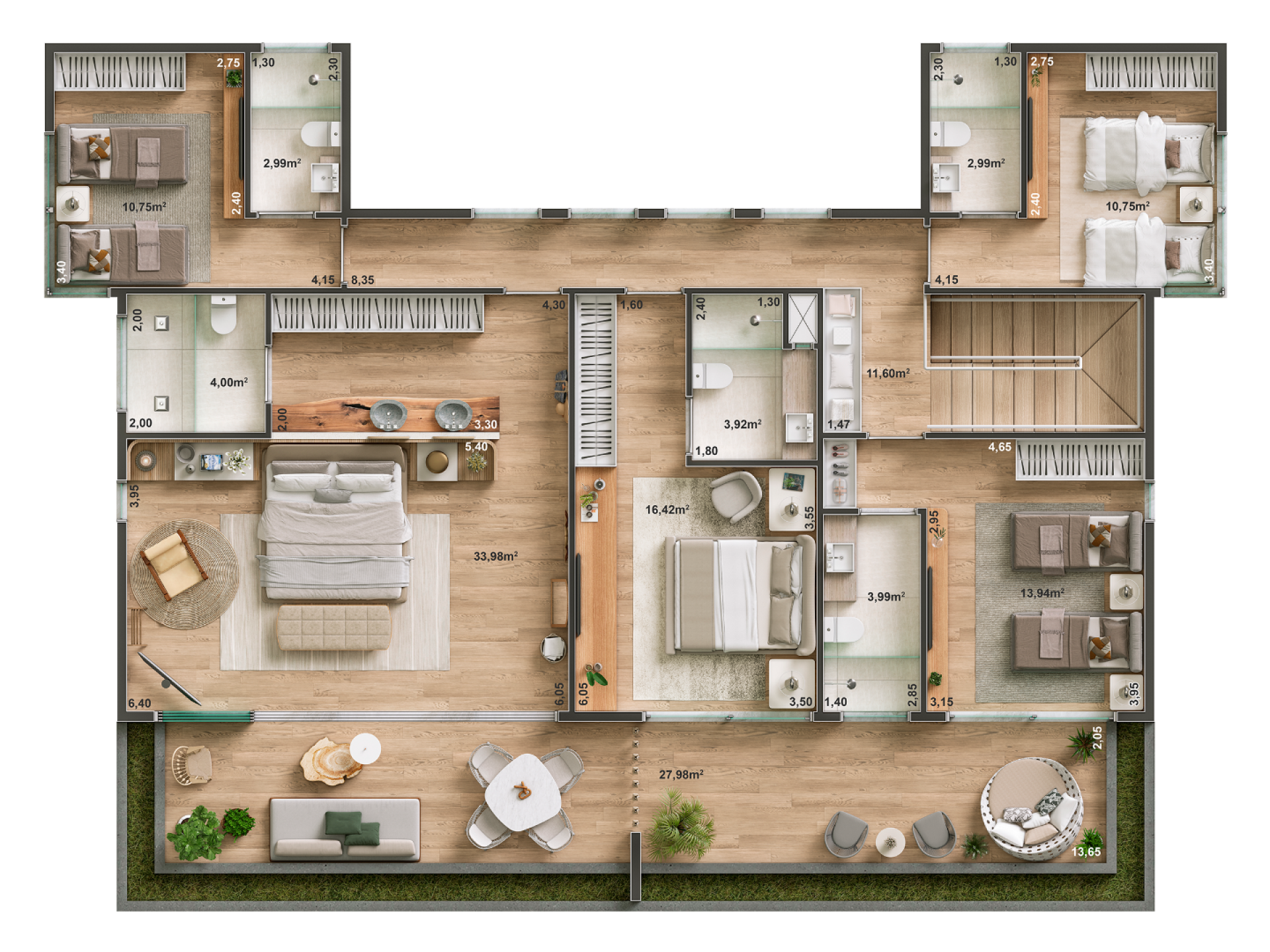 Suítes com varanda no pavimento superior